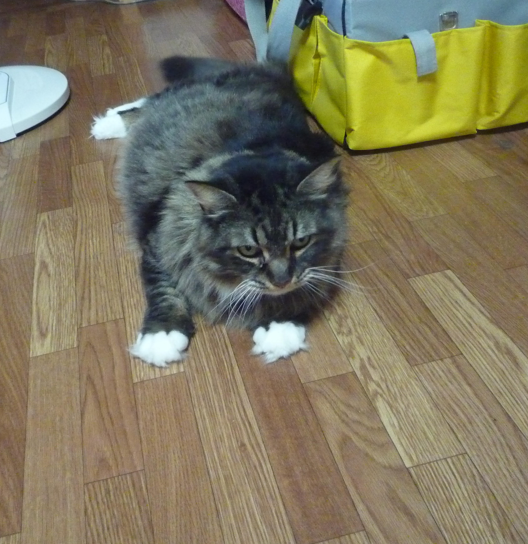 猫ともで遊んでるうちに、シッターに近づきすぎて慌てて逃げていきます(